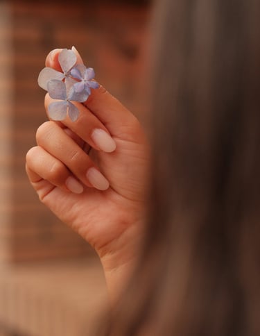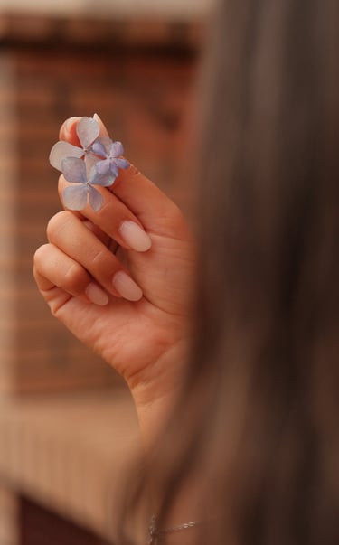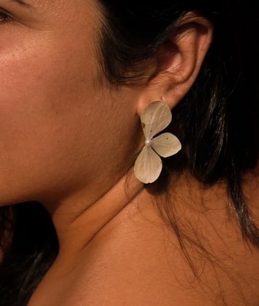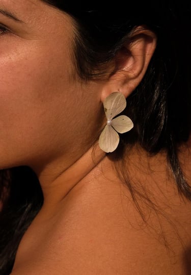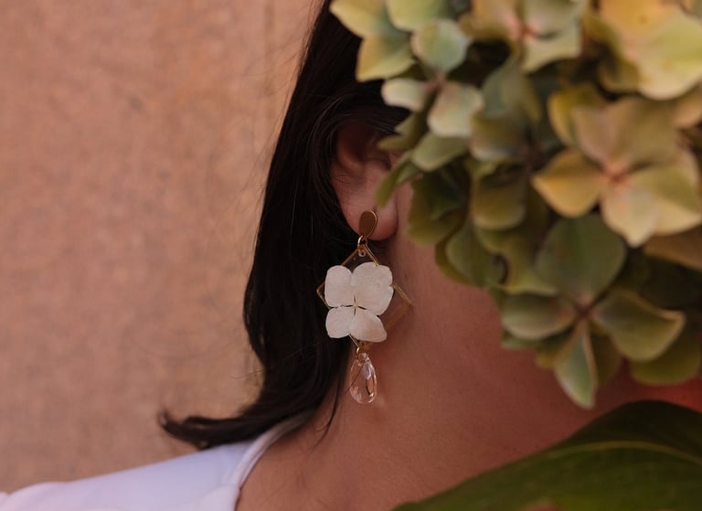 Cada pendiente está hecho con flores y hojas reales. Éstos, al ser naturales, son impredecibles, por lo que algunas flores pueden presentar pequeñas grietas, cambios en la tonalidad o irregularidades en la forma. Eso forma parte de su encanto y, para mí, son huellas que muestran su autenticidad, lo que hace que cada pendiente sea una joya única e irrepetible. Al no ser piezas industriales, tienen el valor de lo hecho a mano con un toque humano que los hace muy especiales.
