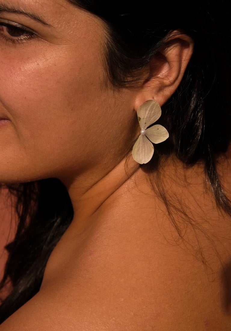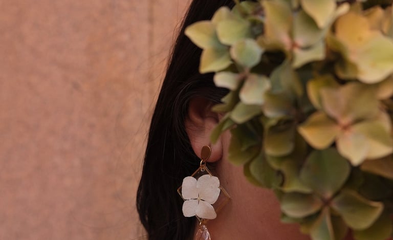 Cada pendiente está hecho con flores y hojas reales. Éstos, al ser naturales, son impredecibles, por lo que algunas flores pueden presentar pequeñas grietas, cambios en la tonalidad o irregularidades en la forma. Eso forma parte de su encanto y, para mí, son huellas que muestran su autenticidad, lo que hace que cada pendiente sea una joya única e irrepetible. Al no ser piezas industriales, tienen el valor de lo hecho a mano con un toque humano que los hace muy especiales.